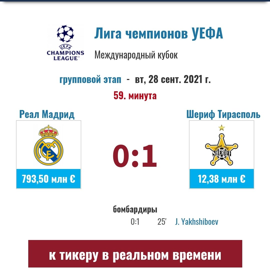 Реал Мадрид – Шериф: Лайв трансляции матчей, выгодные коэффициенты на события, гарантированные выплаты победителям и.
